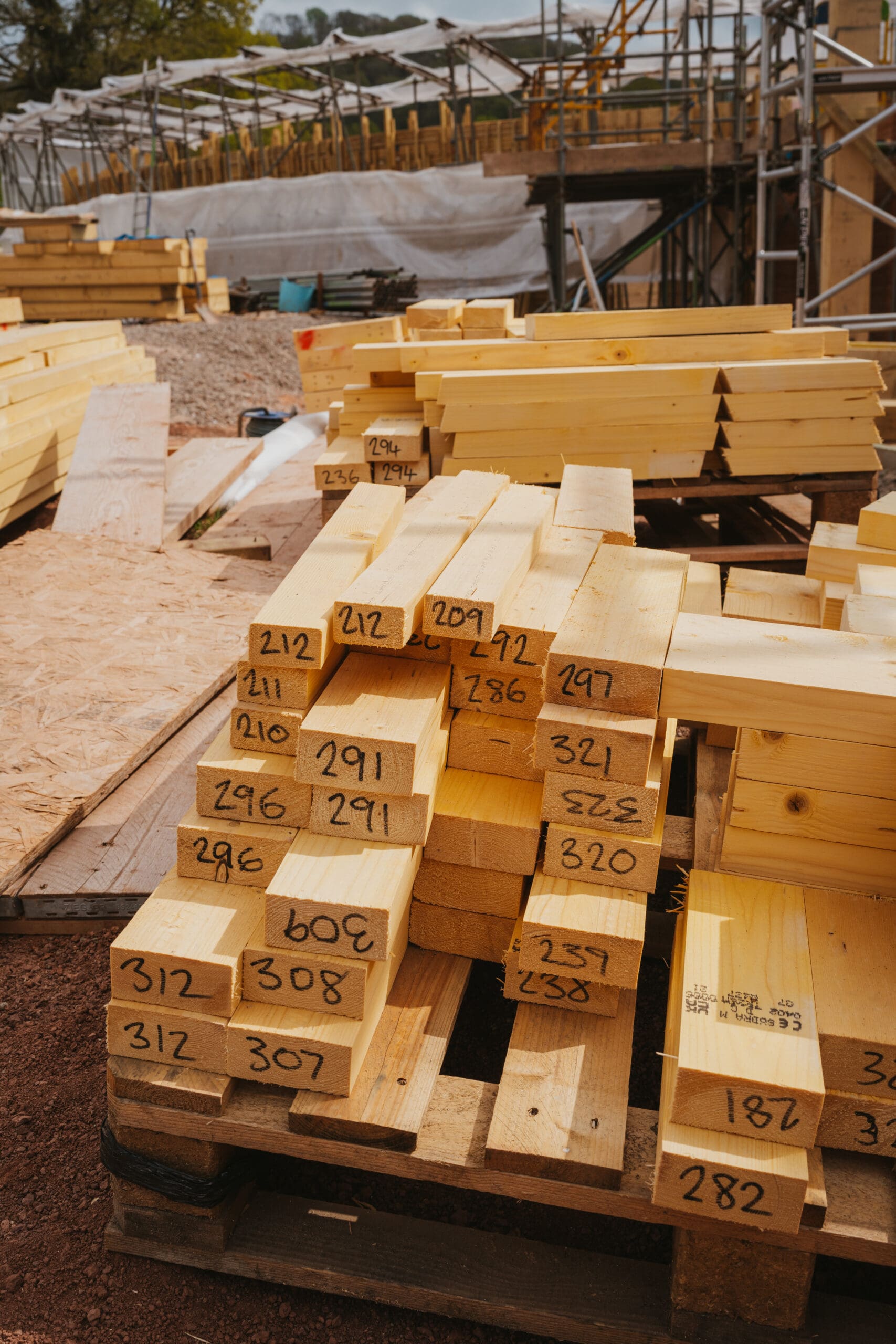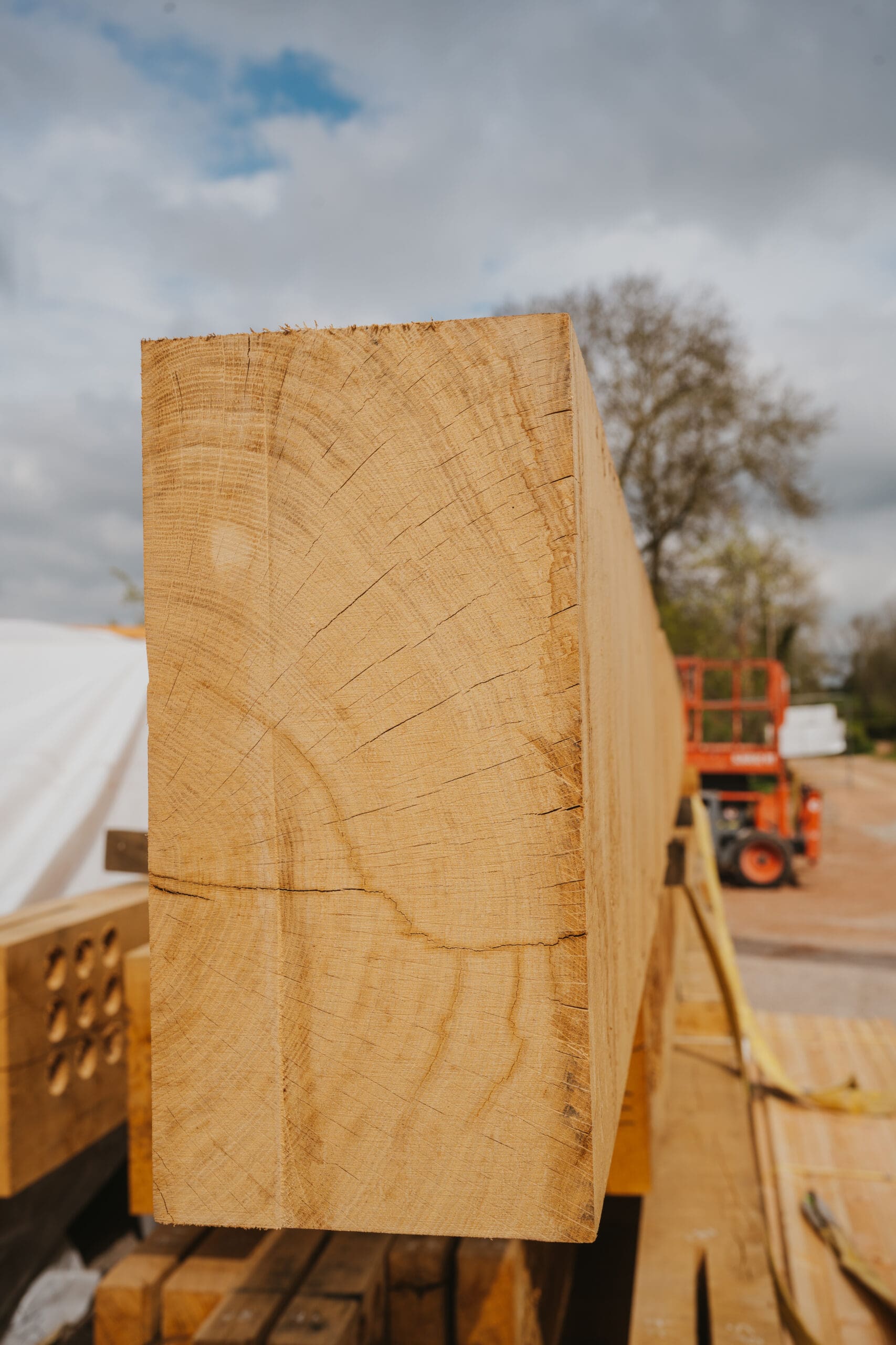 It’s May, and excitement builds as the oak beams have arrived on site from Oakwrights.